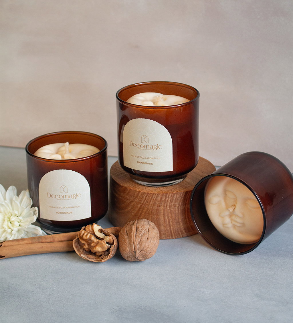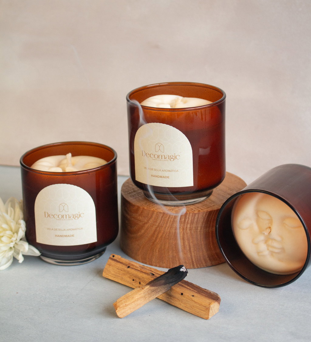 Vela aromática de cera de soja 100% natural, vertida a mano con decoración de sol y luna en 3D.