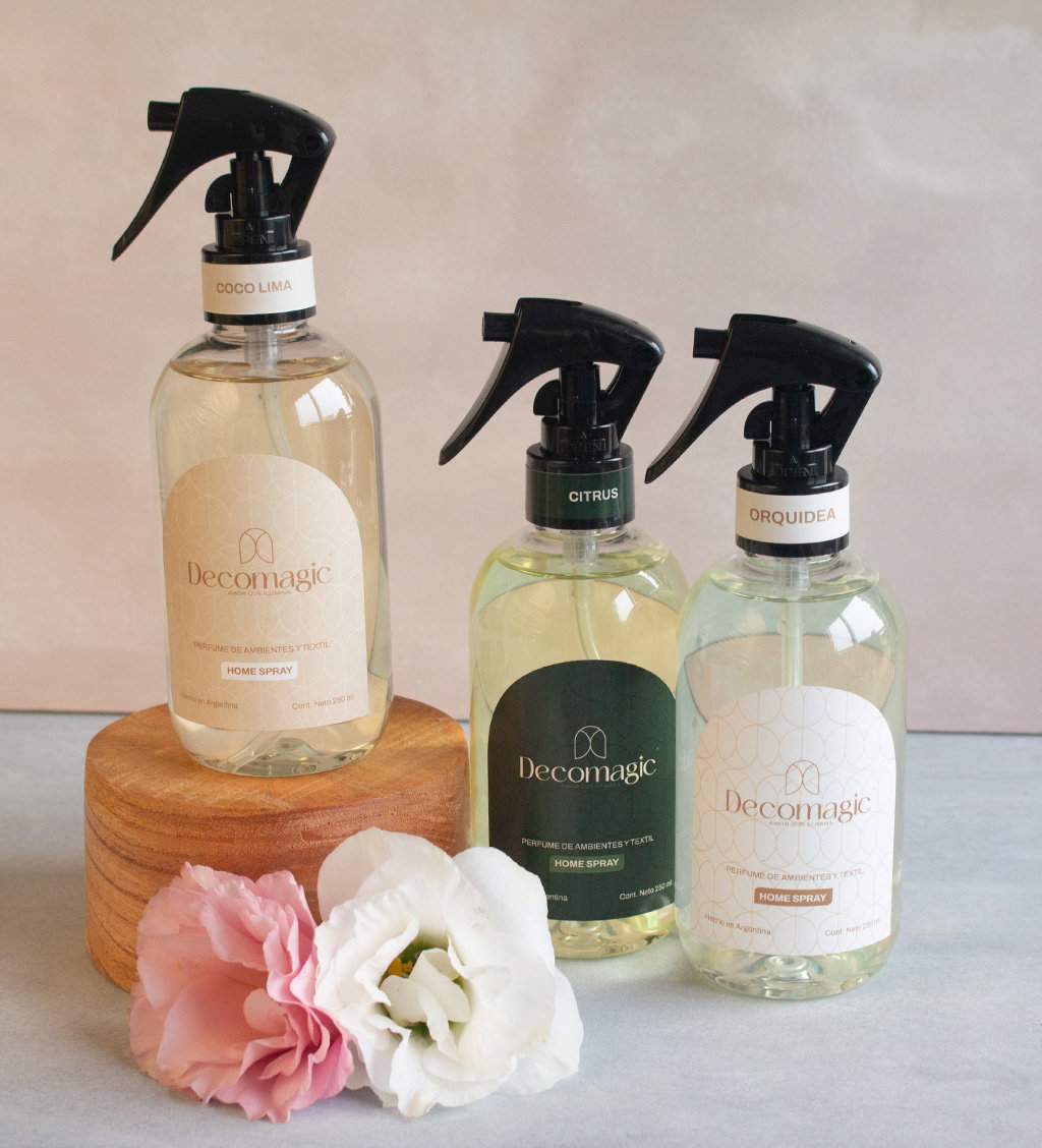 Perfumes de ambientes y textiles con fragancias cítricas, florales y frutales increíblemente duraderas, podes usarlos en cualquier ambiente y superficie textil:
